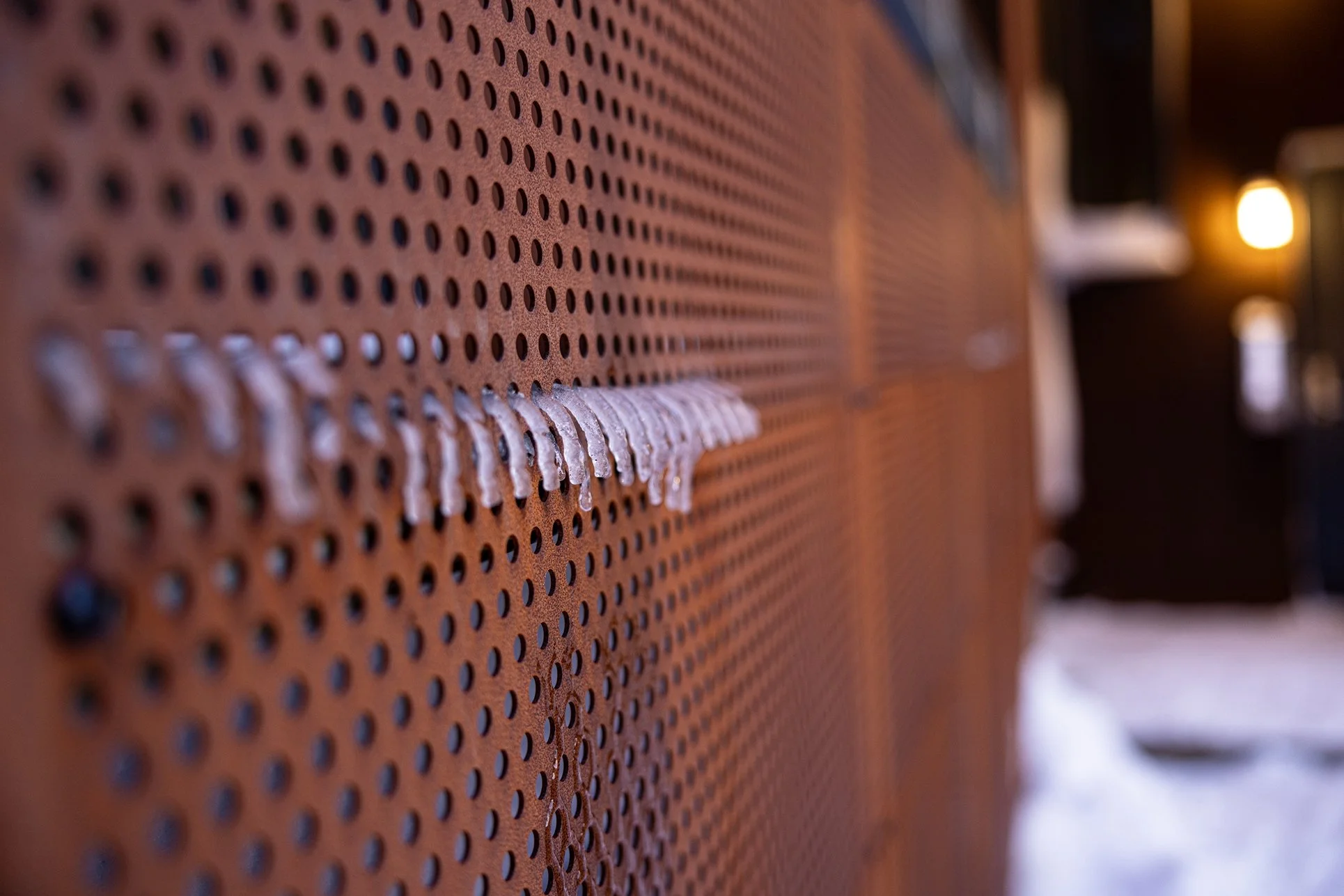 A façade of solid and perforated corten steel weathers naturally, echoing the colours and textures of the surrounding bedrock and landscape.