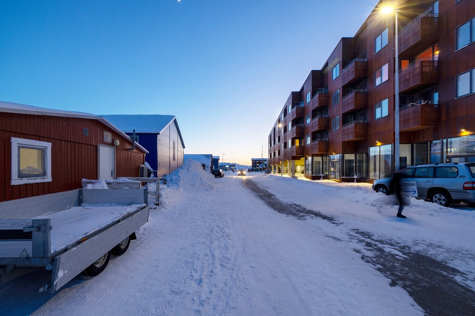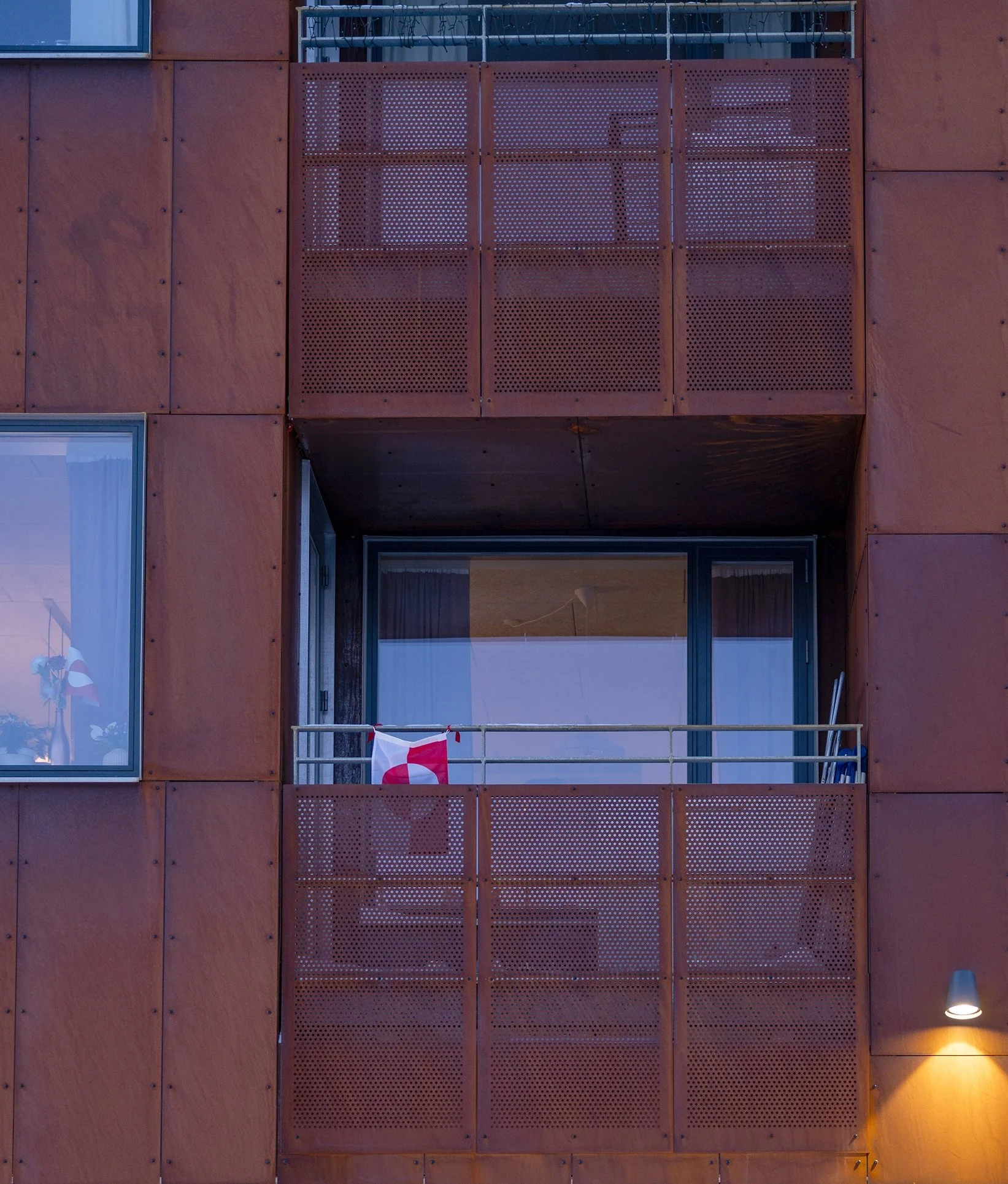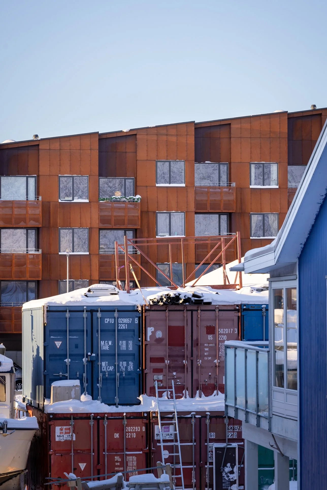 Nuukullak 10 is positioned along a mountain ridge in central Nuuk, responding to the challenge of building on a steep, wind-exposed site in a Low Arctic climate. Shaped as a horseshoe, the low-rise residential building encloses a wind-sheltered courtyard that establishes a protected microclimate while opening southward to daylight, views of the surrounding landscape, and the sea.